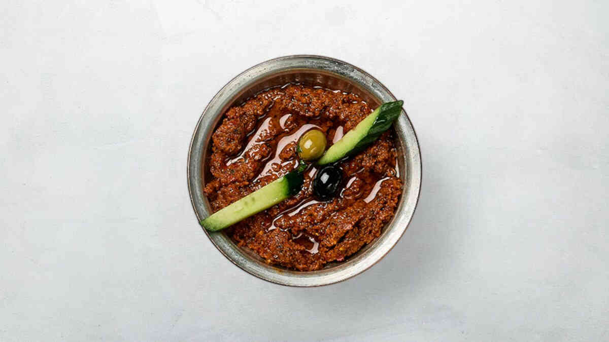 TvåVitlöksmarinerade jätteräkor och ett grönsakerspett serveras med